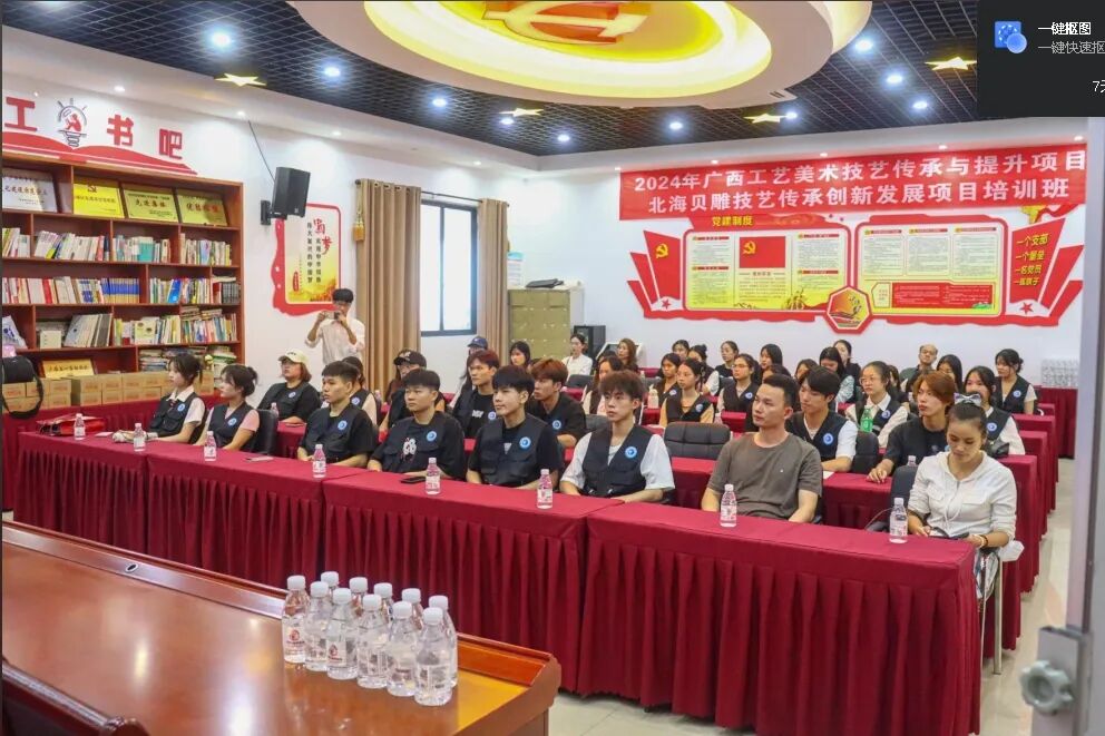 11月11日,由广西工业和信息化厅主办、广西工艺美术协会承办、北海市工业发展促进中心、北海市恒兴珠宝有限责任公司、北海职业学院、北海贝雕博物馆协办的2024年广西工艺美术技艺传承与提升项目——北海贝雕技艺传承创新发展项目培训班在北海职业学院正式开班。